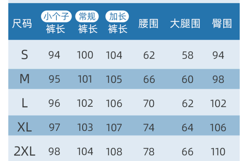 Sizes: S, M, L, XL, 2XL