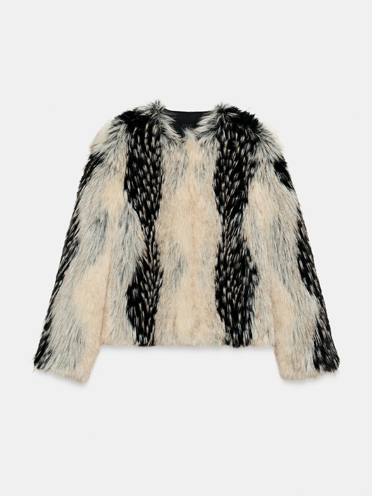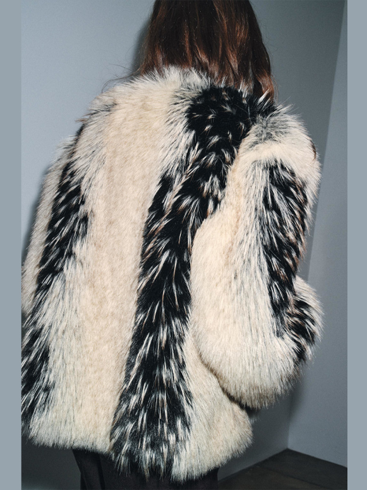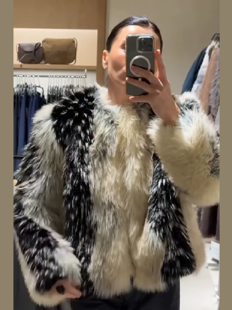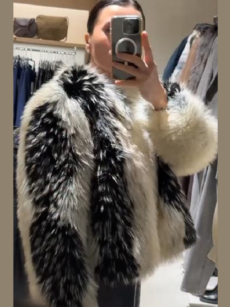 This faux fur coat boasts exceptional quality – the plush pile is incredibly soft and fluffy, feeling as gentle as a cloud. The black-and-white pattern exudes a sophisticated elegance, making it both warm and eye-catching for autumn and winter outings. It’s truly great value for money!