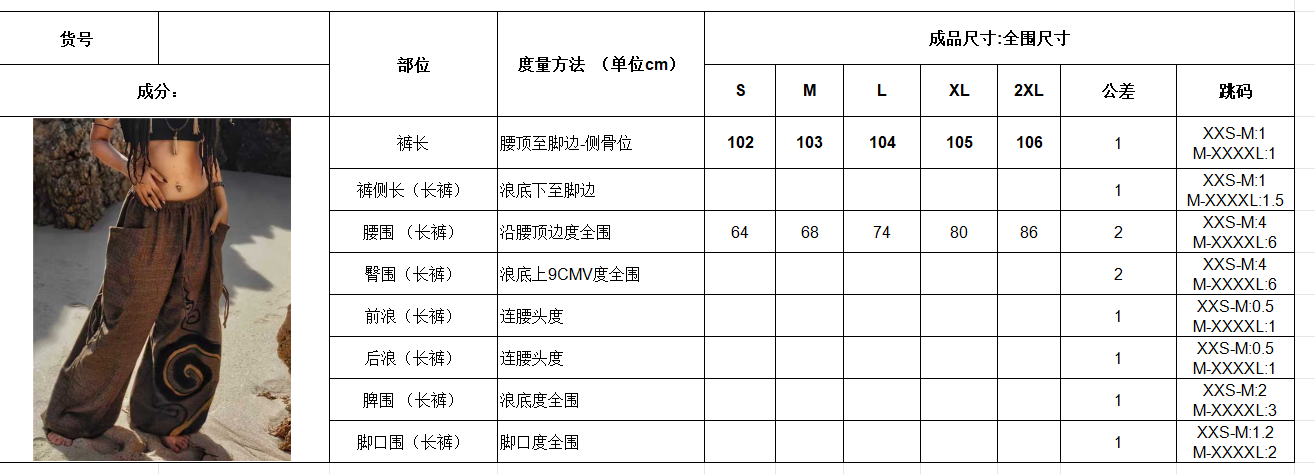 Design: Handcrafted spiral totem prints/embroidery on the trouser legs, integrating tribal, hippie and mysticism elements, with strong visual impact and full of exotic atmosphere.