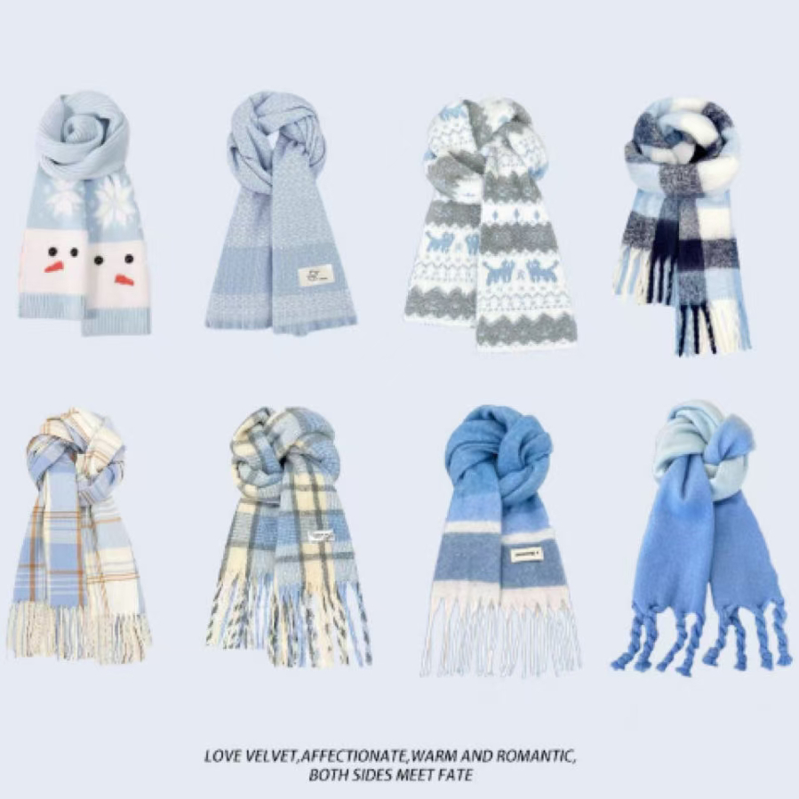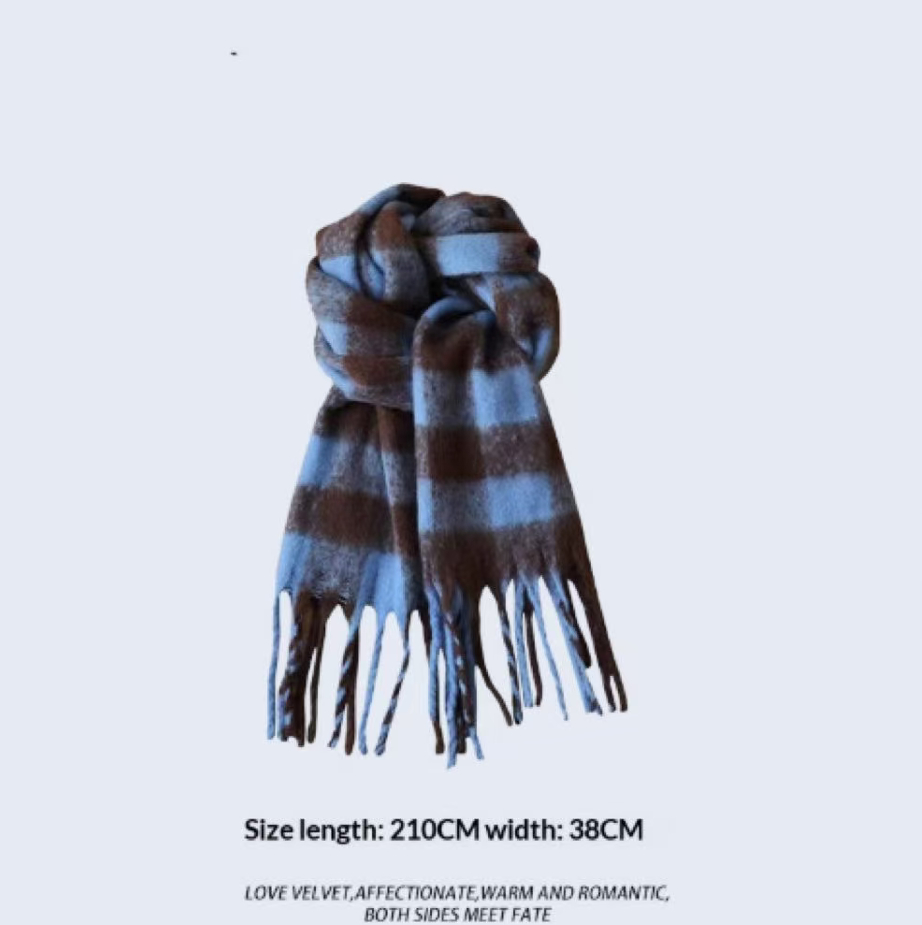 Color: Loop Yarn Plaid Scarf (Blue) / Loop Yarn Plaid — Blue and Brown Plaid Scarf