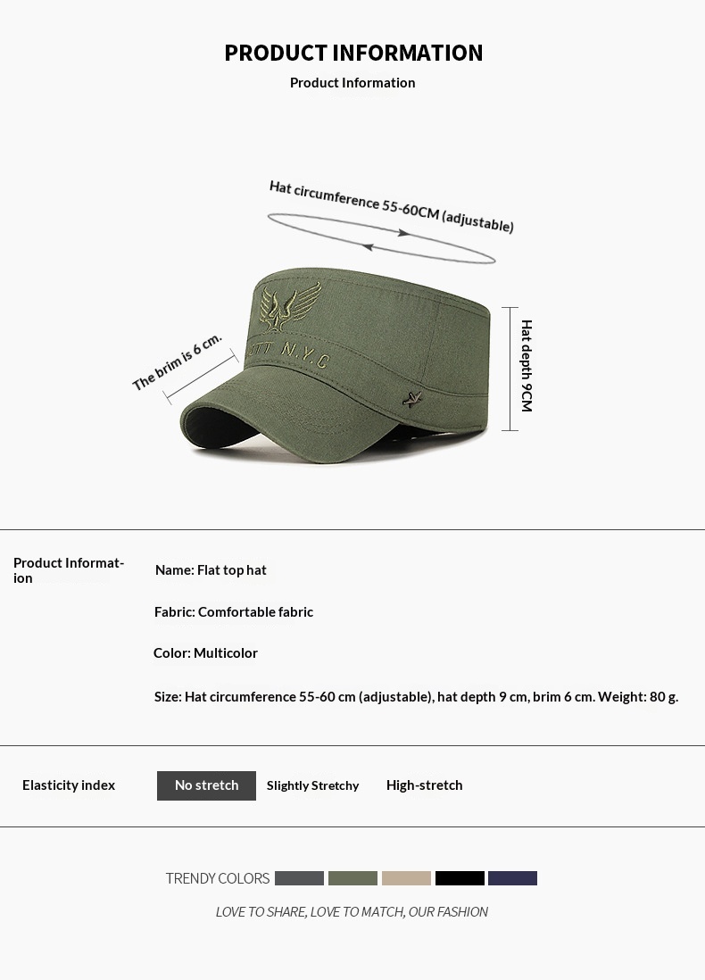 Hat crown style: Flat top