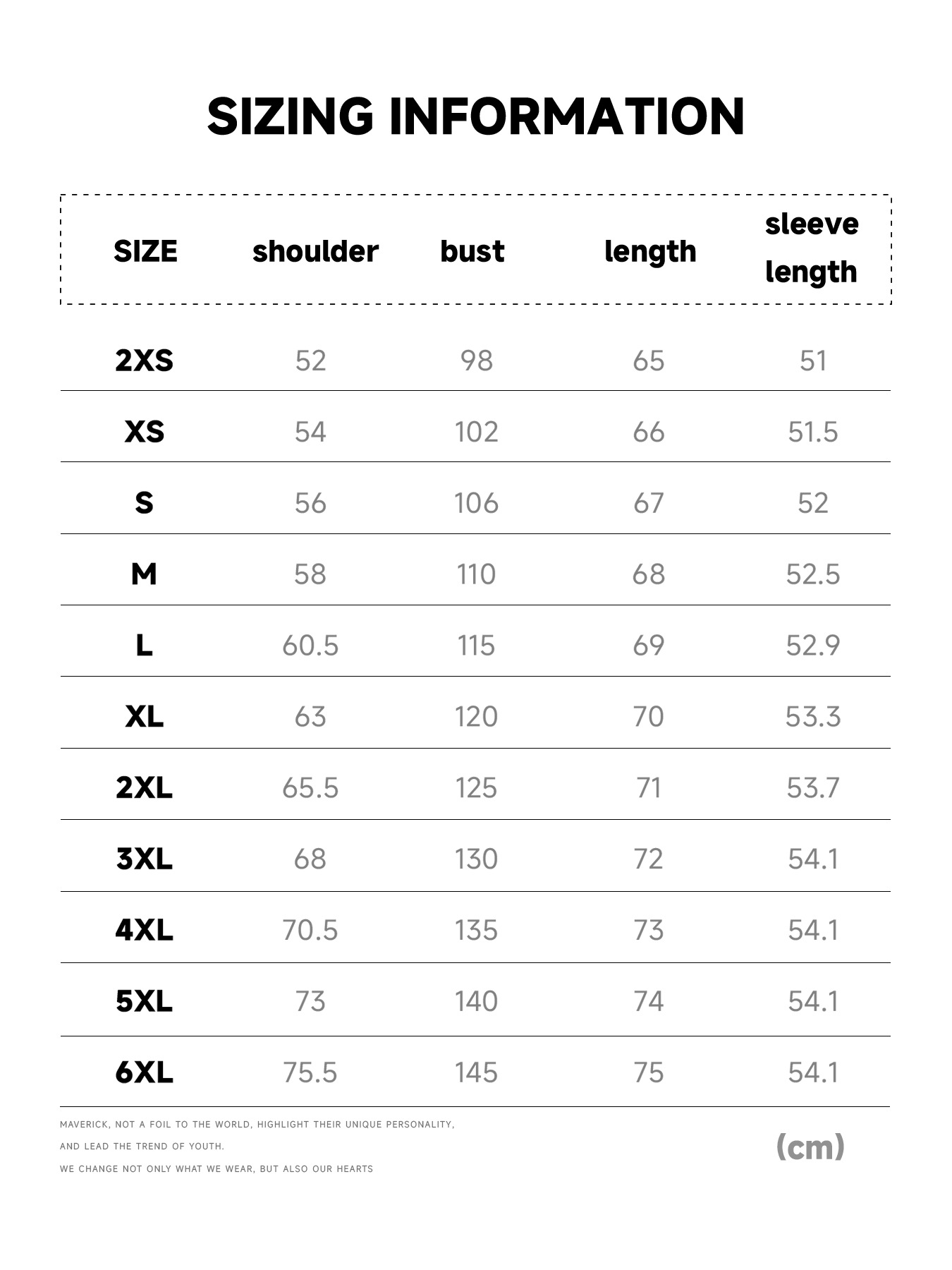 Sizes: S, M, L, XL, 2XL, 3XL, 4XL, 5XL