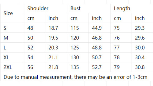 Note: 1. Asian sizes are 1 to 2 sizes smaller than European and American people. Choose the larger size if your size between two sizes. Please allow 2-3cm differences due to manual measurement. 2. Please check the size chart carefully before you buy the item, if you don’t know how to choose size, please contact our customer service. 3.As you know, the different computers display colors differently, the color of the actual item may vary slightly from the following images.
