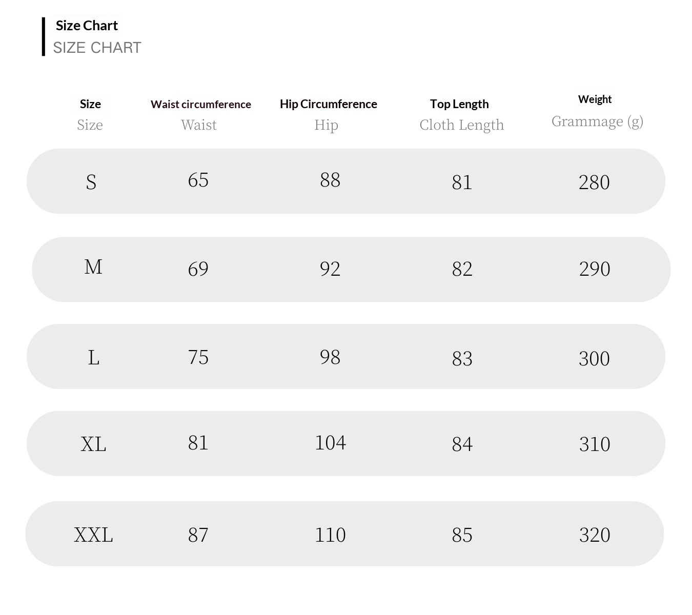 Sizes: S, M, L, XL, XXL