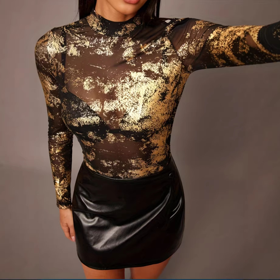 Trendy Elements: Metallic finish, mesh fabric