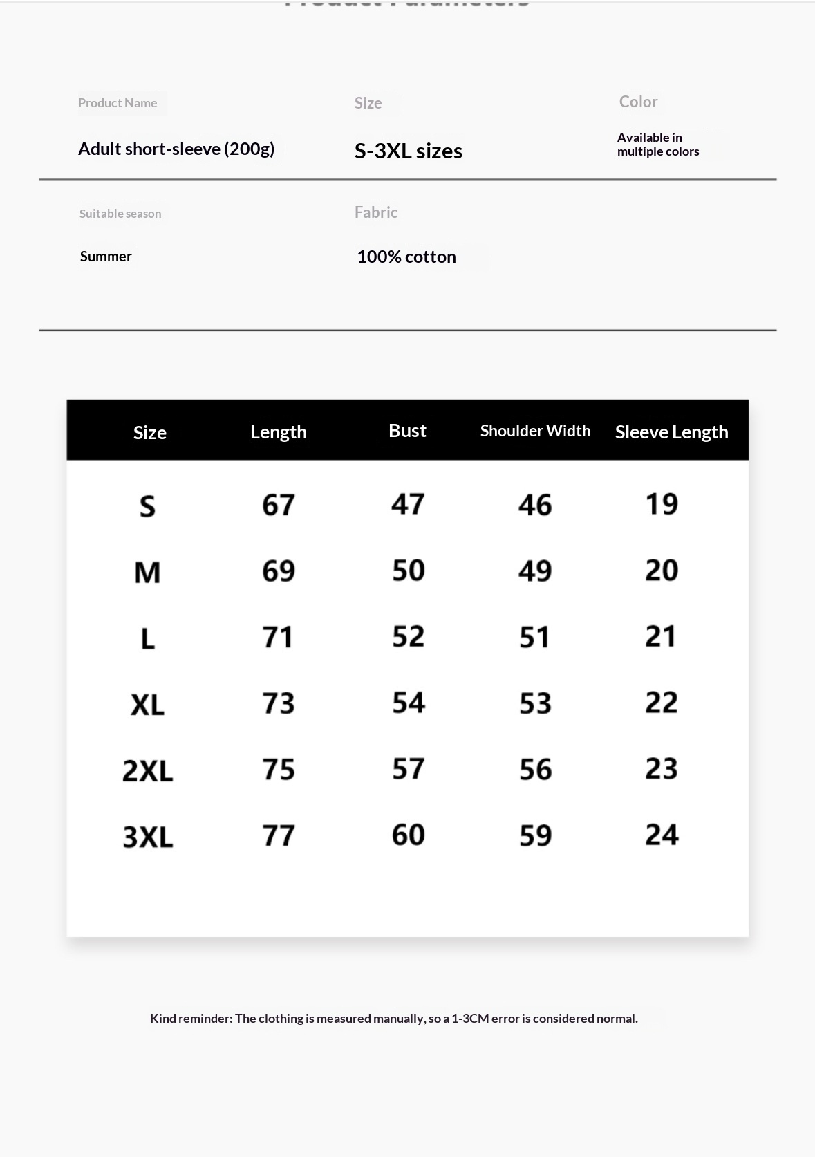 Sizes: S, M, L, XL, 2XL, 3XL