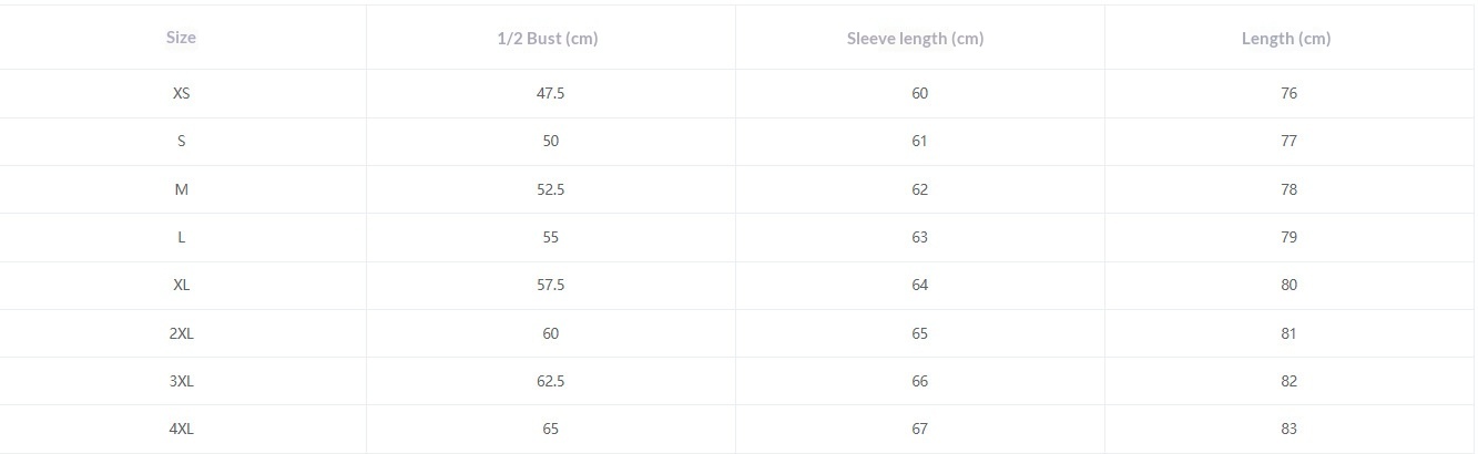 Sizes: S, M, L, XL, 2XL, 3XL, 4XL, 5XL