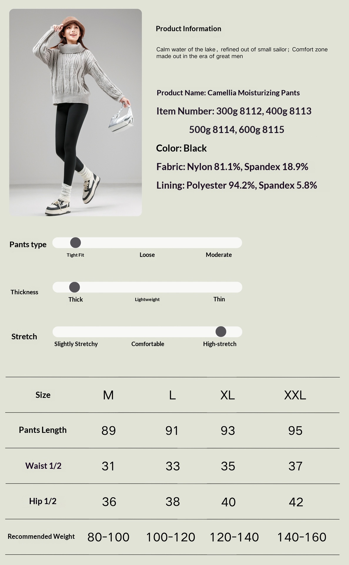 Colors: Camellia Barbie Pants (300g Black), Camellia Barbie Pants (400g Black), Camellia Barbie Pants (500g Black), Camellia Barbie Pants (600g Black)