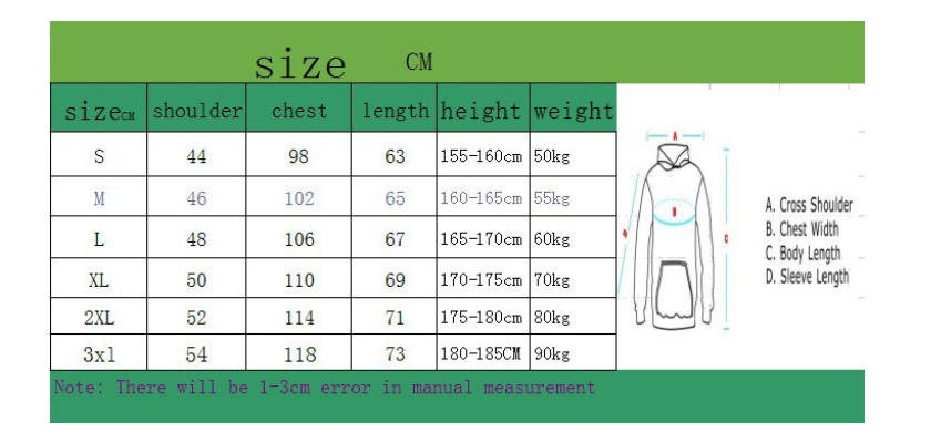 Note: 1. Asian sizes are 1 to 2 sizes smaller than European and American people. Choose the larger size if your size between two sizes. Please allow 2-3cm differences due to manual measurement. 2. Please check the size chart carefully before you buy the item, if you don’t know how to choose size, please contact our customer service. 3.As you know, the different computers display colors differently, the color of the actual item may vary slightly from the following images.